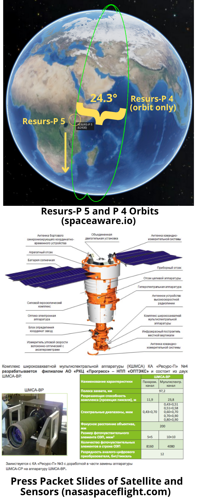 – The two satellites are both inclined 97.3° but are not co-planar as Resurs-P 5 RAAN is offset ~24.3° west of Resurs-P 4.