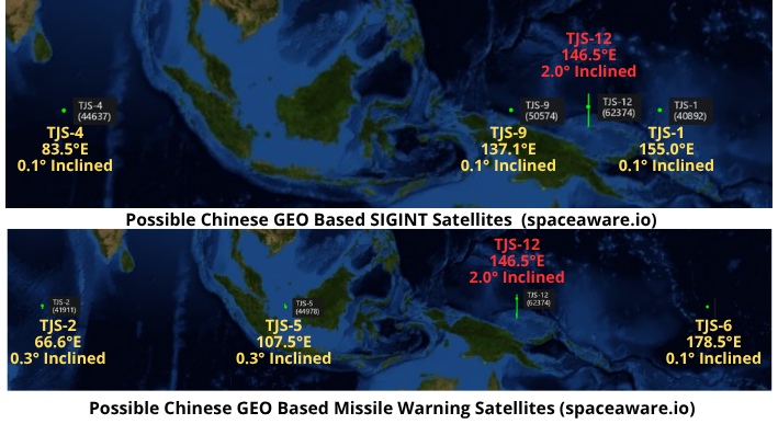 – Per Gunther’s Space Page, TJS-12 is possibly associated with China’s Qianshao-3 SIGINT constellation. TJS-12 may also be a GEO based missile warning satellite.