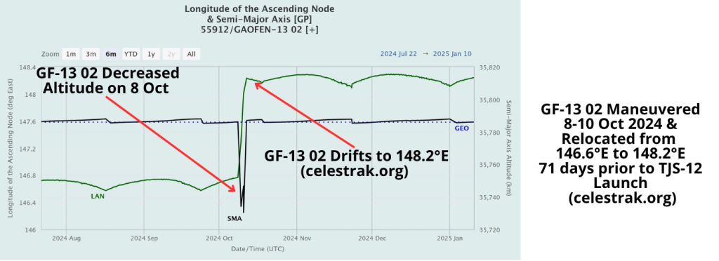 – TJS-12 was first observed at 146.5°E and 2.0° inclination on 31 Dec 2024.