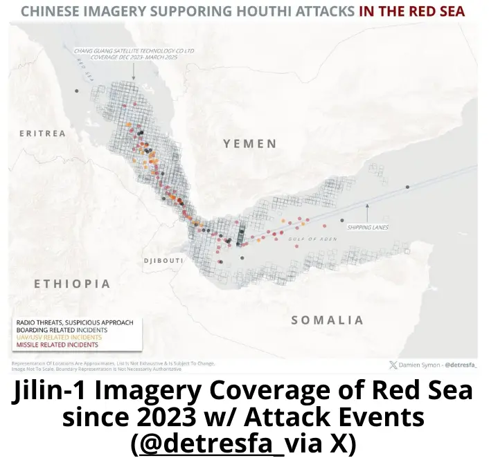 17 Apr: The Financial Times’ Demetri Sevastopulo reported that Chinese commercial satellite company Chang Guang Satellite Technology Co Ltd (CGSTL) has been supplying imagery to Houthis rebels in Yemen. The report contends that this imagery was then used to target US warships operating in the Red Sea.