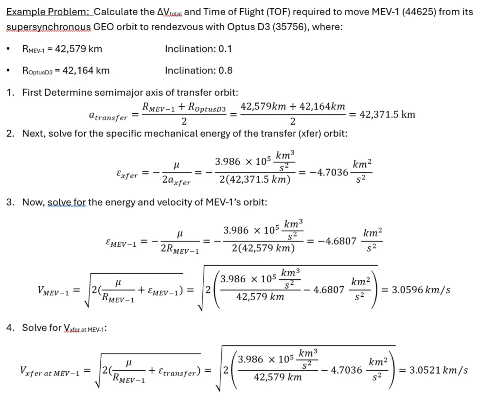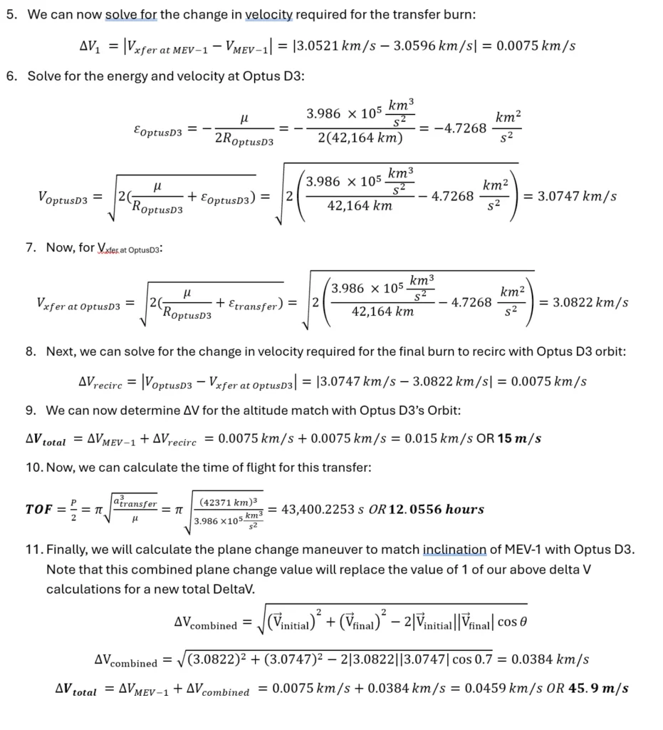 I thought the potential MEV-1/Optus D3 RPO provided an ideal opportunity to run through the math required to determine fuel/energy requirements to conduct such an operation. So I passed the basic orbital information to my Integrity ISR colleague Jason Dean and he did the rest! Bottom Line: MEV-1 will require ΔV (fuel) of 45.9 m/sec to plane-match and RPO with Optus D3.