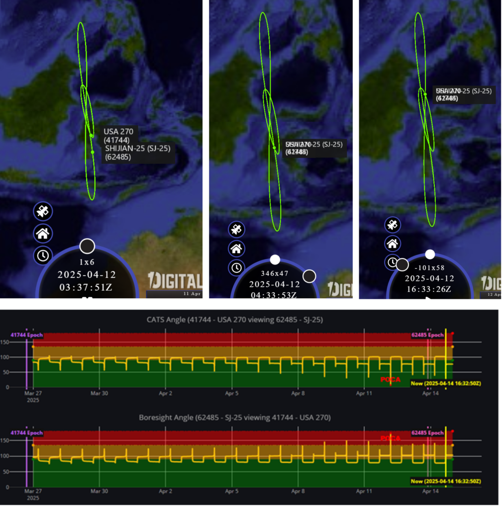 Way back in Feb 2020, the Northrup Grumman Mission Extension Vehicle (MEV)-1 (44625) docked with Intelsat 901 (26824) in a “graveyard” orbit above GEO and maneuvered the satellite back into service. 5 years later, MEV-1 support to Intelsat 901 has ended. On ~30 Mar 2025, MEV-1 began to increase its average altitude and carried along with it the Intelsat 901 satellite. Once reaching their desired orbit 414.5km above GEO, MEV-1 undocked with Intelsat 901 on 4 Apr 2025. Intelsat 901 will now be decommissioned while MEV-1 seems headed for another customer. Watch Intelsat Mission Video. Watch Northrup Grumman Docking Video.