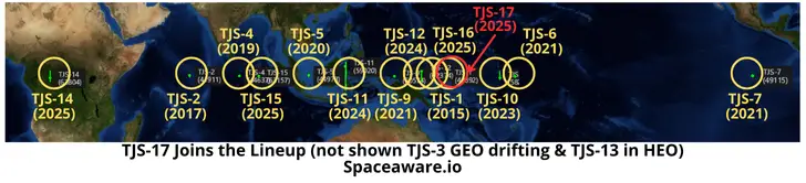 – In the past 10 years China has launched 16 TJS satellites, 11 of which were launched in just the past 4 years. 2025 is shaping up to be a year of unprecedented activity for the TJS family. TJS-17 is the 4th TJS launch for the first half of 2025: