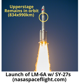 -China left the LM-6A upperstage in an 834 x 990 km orbit at an inclination of 99.7°. The object joins a growing number of large/non-maneuverable debris circling the Earth at 800-900km (see LEOLabs graphic).