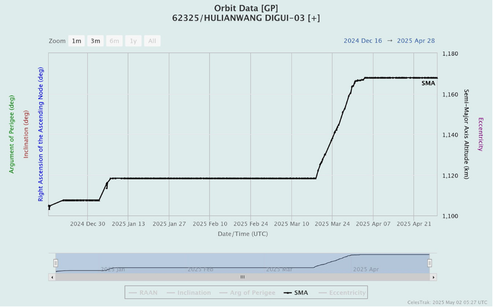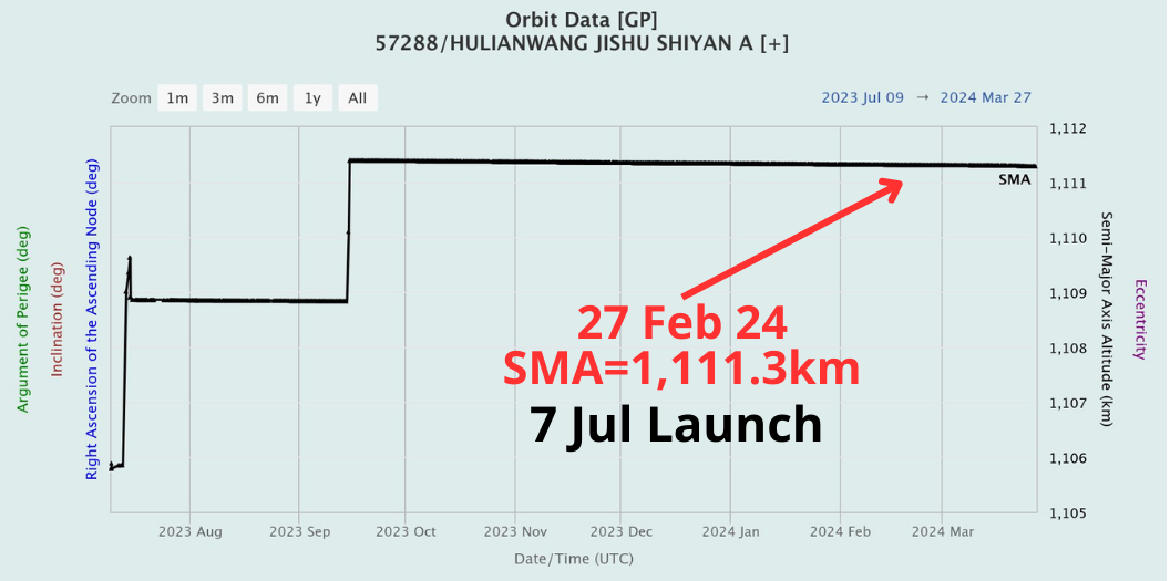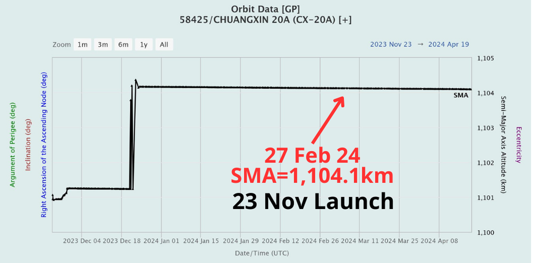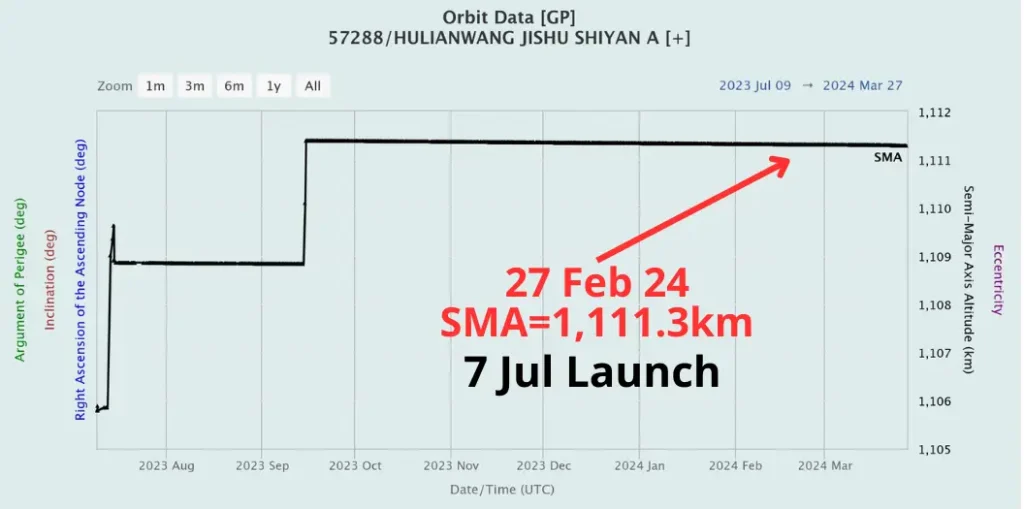 - China also launched the Group 1 satellites to an average altitude of 1,100km. The satellites raised their altitude ~10km in the first 10 days on orbit. They stayed at this altitude for ~3 months and then increased their orbits another 50km over the course of 2 weeks. Expect the Group 3 satellites to follow a similar pattern.