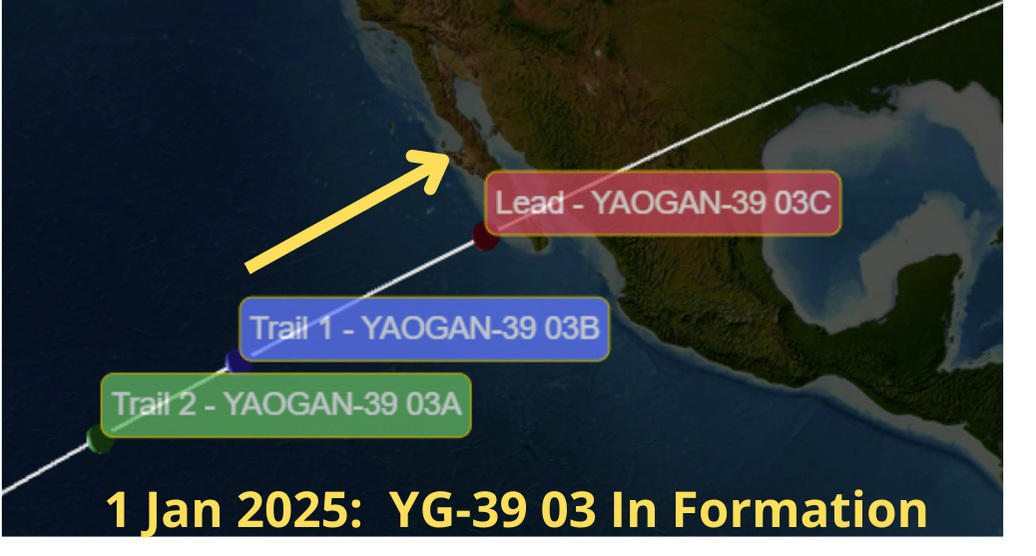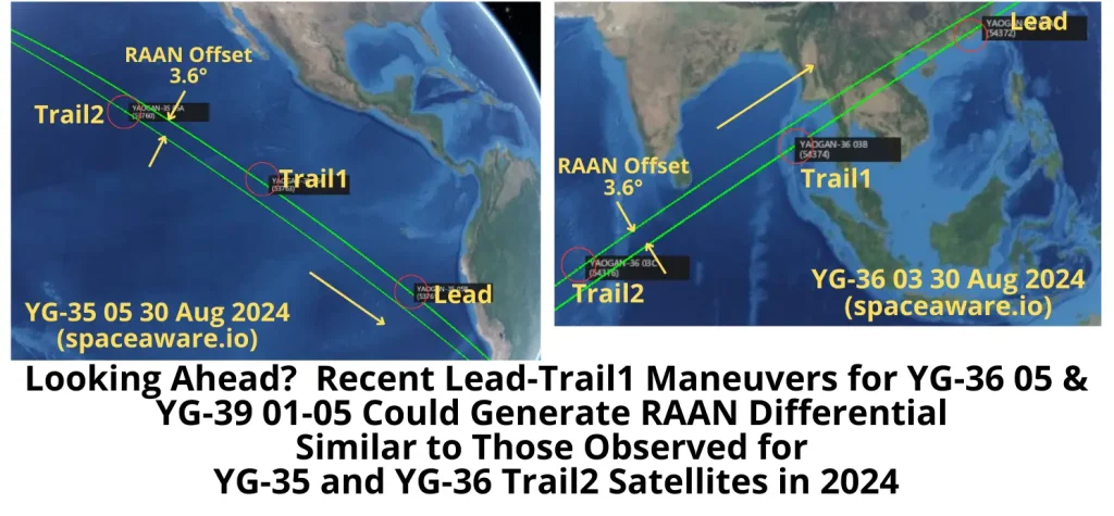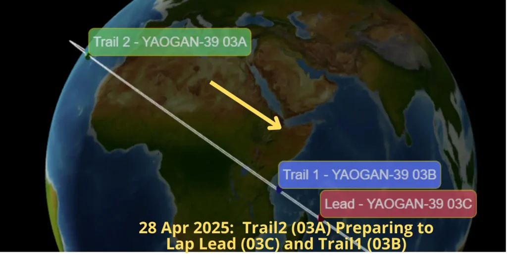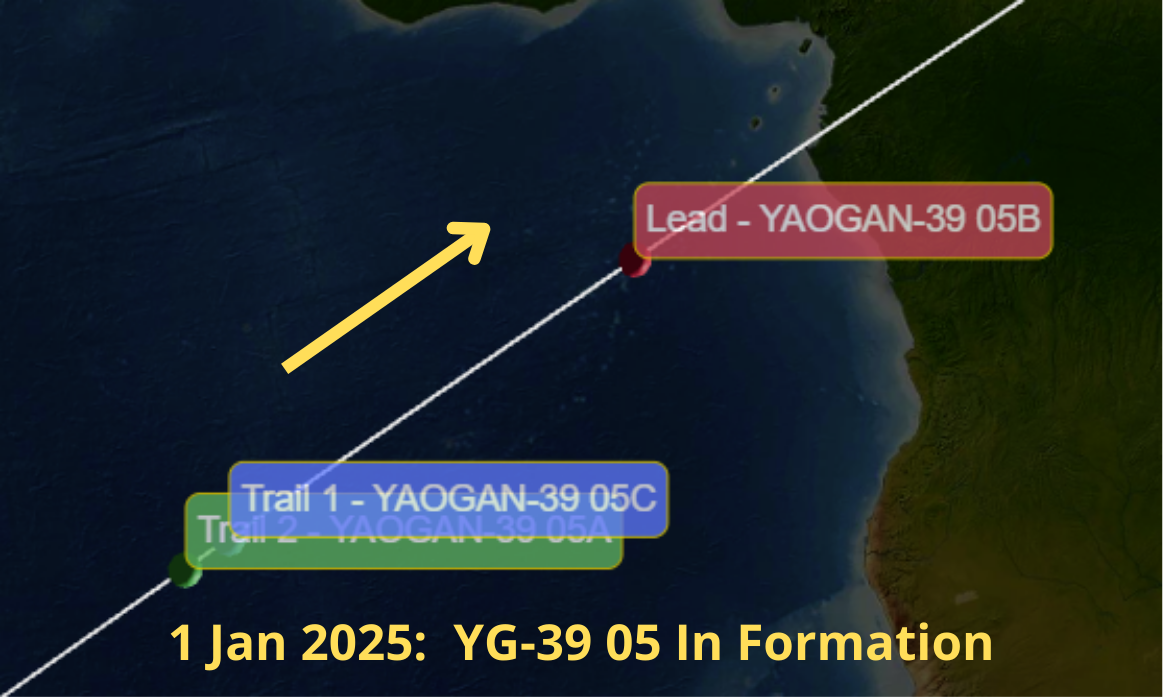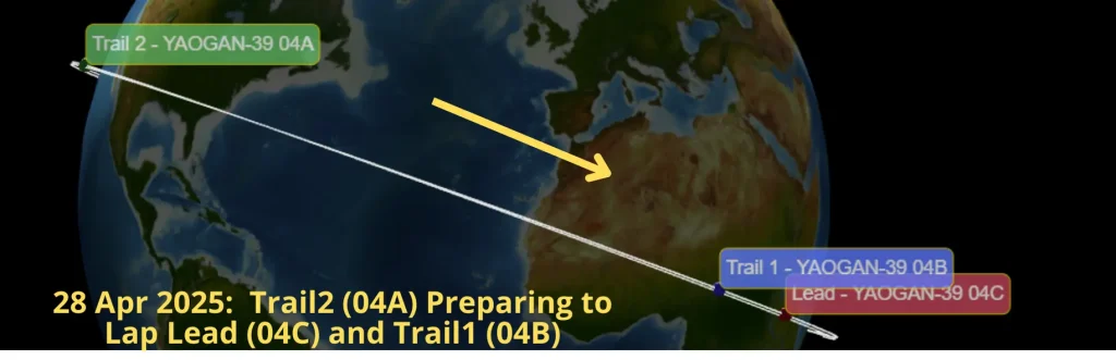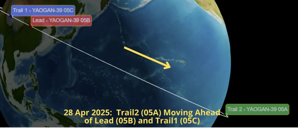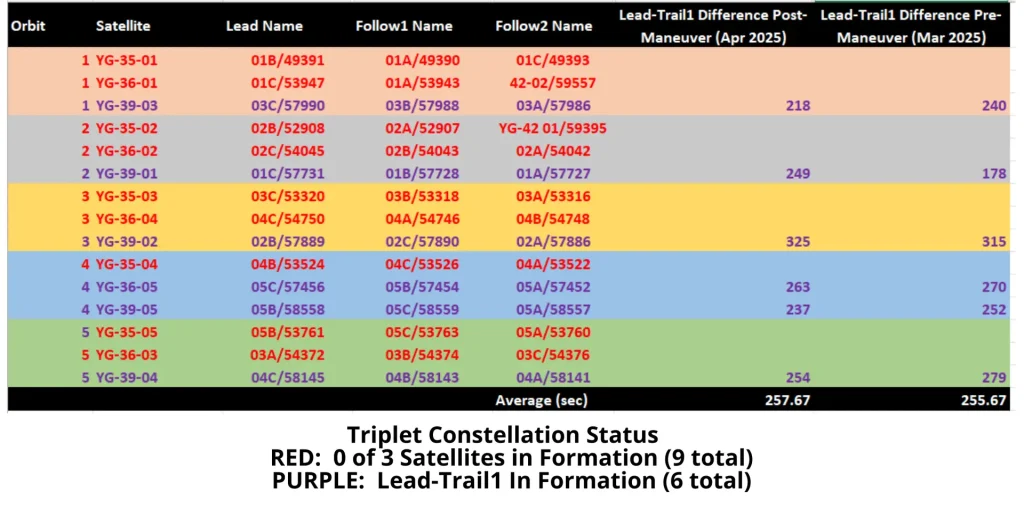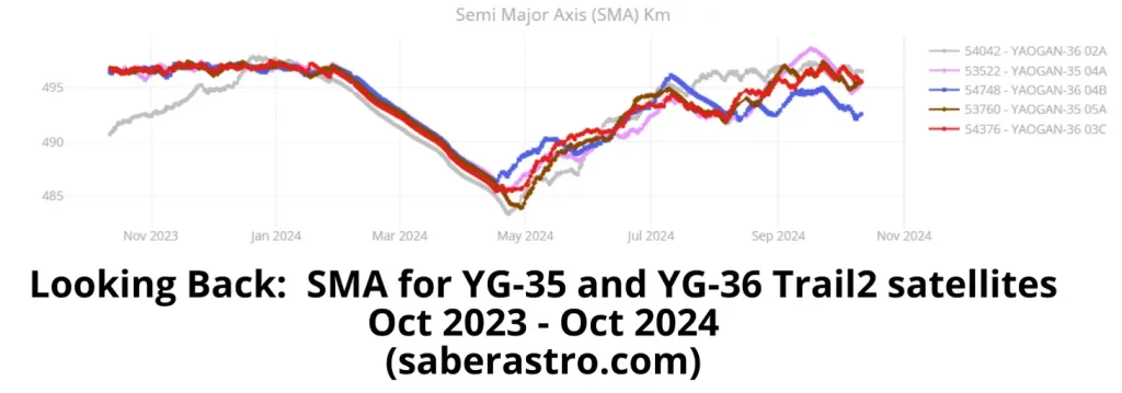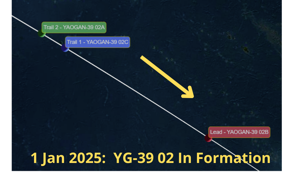 – I don’t believe China is “pulling the plug” on these 6 formations. This looks like an inverse from what we saw from late-Jan through Sep 2024 with the older YG-35 & 36 triplets. In those instances China allowed the SMA of the Trail2 satellites to gradually decrease for about 4 months and then attempted to increase their SMA to bring the Trail2 satellites back into formation once they had achieved the desired RAAN offset.