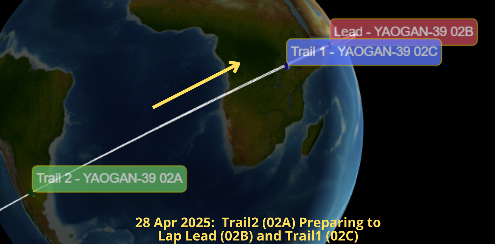 – China may have increased the SMA of Lead and Trail1 to a point where natural SMA degradation will bring them down to Trail2 while minimizing the need for additional maneuvers and conserving fuel.