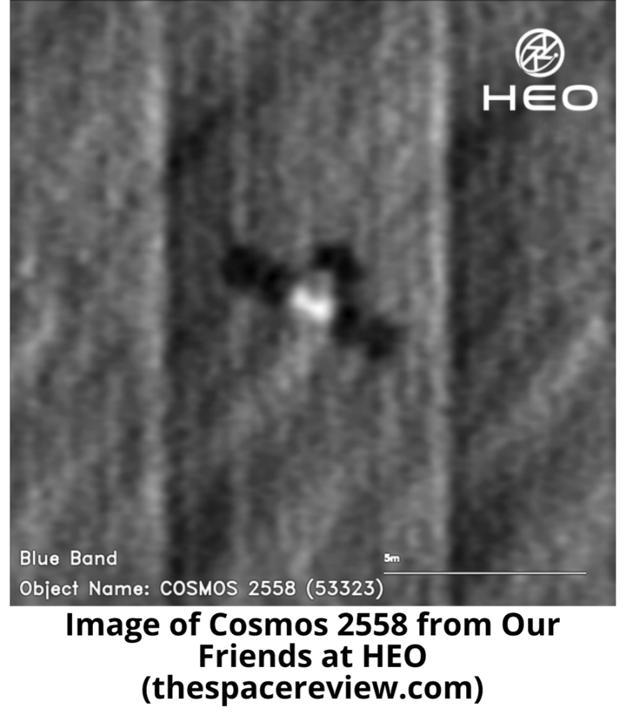 - In August 2022 and May 2024, Russia orbited two more satellites (Cosmos 2558 & 2576) that were inserted into the same orbital plane as US reconnaissance satellites (USA 326 and USA 314, respectively.)