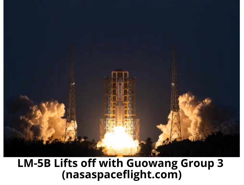 28 Apr: China launched a Long March-5B with a Yuanzheng-2 upper stage from Wenchang carrying 10 Guowang (63687-63696) satellites. This was the third group of China’s state-sponsored Starlink-like Guowang constellation. The satellites are cataloged under the name Hulianwang Digui. There have been unconfirmed links between the SatNet constellation supporting China’s DF-21D & DF-26B missiles. The DF-26B is China’s first conventionally-armed ballistic missile capable of striking Guam. Launch Video.