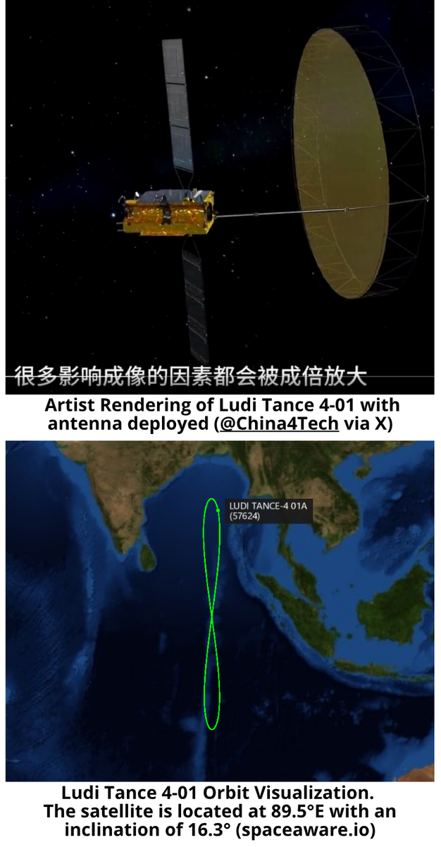 22 Feb 2025: Many will recall that on 12 Aug 2023 China launched the world’s first GEO based Synthetic Aperture Radar (SAR) imaging satellite, Ludi Tance-4 01 (57624) on a Long March 3B rocket from Xichang. Watch mission rendition Video. On 27 Feb 2025 Chinese scientists officially disclosed some of the technology behind this satellite. Excerpts below are from