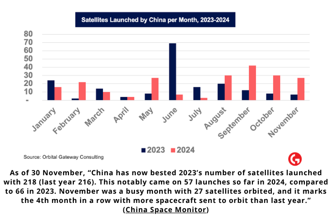 5 Dec: China launched a Long March 6A from Taiyuan with the third batch of 18 Qianfan inernet satellites (Qianfan-37 – 48). There has been very little information released regarding the launch and orbital data was not available as of 6 Dec 2024. Assuming a nominal launch and satellite deployment, this will bring the total number of Qianfan satellites on orbit to 48. Launch Video.