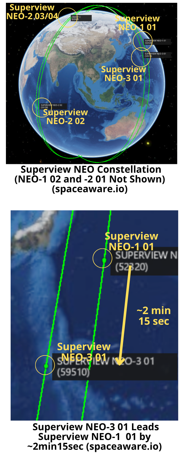 – Superview NEO-2 03/04 are co-planar with one satellite leading the other by ~5 seconds.