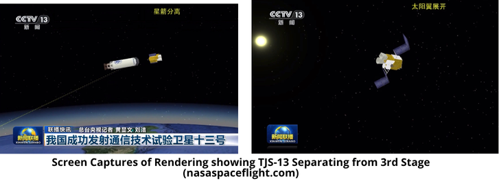 – A 3-4 year old rumor noted that TJS-13 would be one of the Early warning satellites of the TJS series. China included a rendering of the satellite during its launch feed which may support this theory.