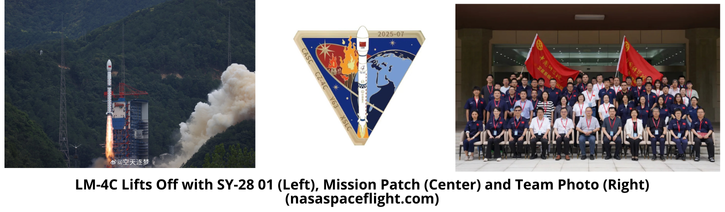 3 Jul: China launched a Long March-4C with the Shiyan-28B 01 satellite Xichang. According to official sources, the satellite entered the desired orbit and “will be mainly used for space environment detection and related technical experiments”. As of 4 Jul SY-28 had yet to be entered into the space catalog and orbital information was unavailable. More to follow. Launch Video.