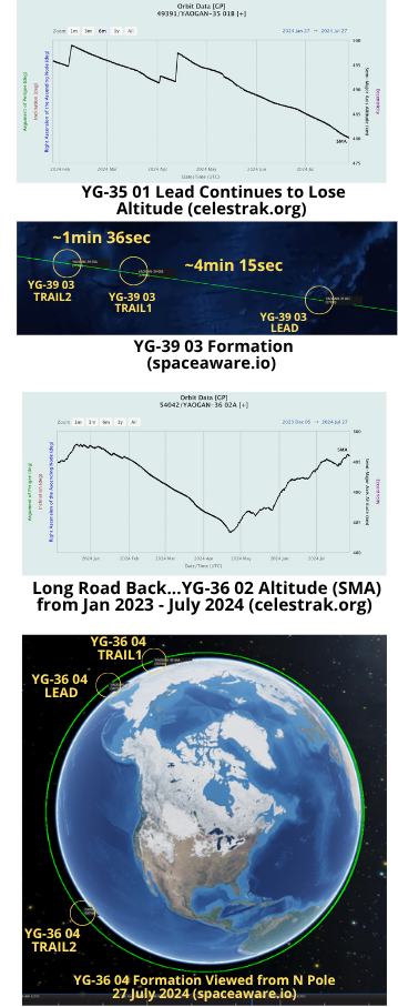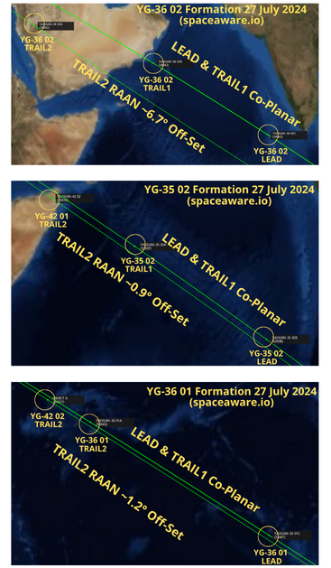 – YG-36 02 is co-planar with YG-35 02 and YG-39 01. Note: the original YG-35 02 Trail2 satellite failed and de-orbited on 19 Apr 2024. China replaced it with YG-42 01 on 2 Apr 2024.