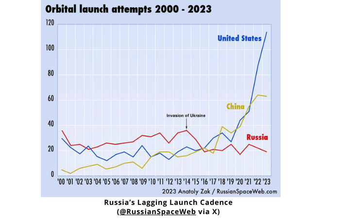 – China has far surpassed Russia as the second most prominent spacefaring nation behind the United States. India is motivated to succeed in space, landing a probe on the Moon last year and pursuing ambitious crewed missions to Earth orbit, and will likely soon overtake Russia as the world’s third most important space power.