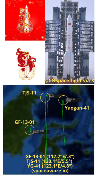 -TJS-11 is the first TJS satellite launched on a LM-5. As with the YG-41 imagery satellite launched 15 Dec 2023 the LM-5 was equipped with an elongated 18.5m fairing (normal is 12.3m).