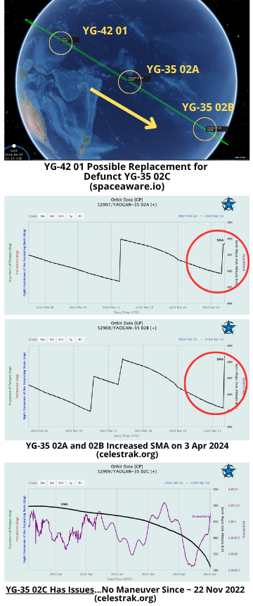 – The coming days/weeks will reveal if YG-42 01 joins the YG-35 02 formation as the “Trail2” satellite replacing the failed YG-35 02C.