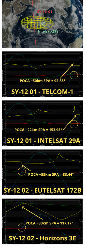 – On 11 Apr 2024 SY-12 01 orbited in proximity of two dead communication satellites in GEO: