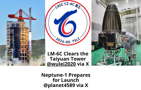 7 May 2024: China successfully completed the maiden launch its new Long March-6C space launch vehicle from Taiyuan Satellite Launch Center. The LM-6C carried 4 commercial remote sensing satellites, the primary being a 239kg SAR imaging satellite, HaiWangSAT-01 (Neptune-01). The LM-6C a two-stage liquid-fueled (liquid oxygen/kerosene) rocket developed by the China Aerospace Science and Technology Corporation (CASC) and is capable of placing a 2.4 ton payload into 500km sun synchronous orbit. Launch Video. Bonus Video showing differences with LM-6A and containing a techno beat!