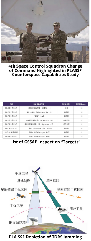 – In 2020 another PLA SSF unit published a paper on American electronic satellite jamming systems, and included what they perceived to be U.S. systems in geosynchronous Earth orbit capable of jamming other satellites. The authors judged that the U.S. Geosynchronous Space Situational Awareness Program (GSSAP) satellites and other national security satellites were capable of space-based jamming.