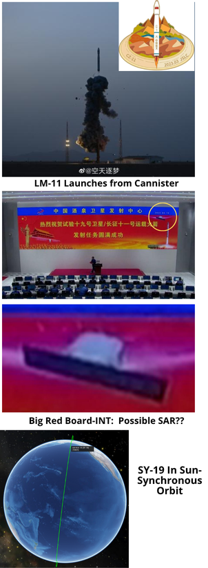 -While not releasing any specific statements on Shiyan-19’s mission or capabilities, the image on China’s Success Announcement appears to be a synthetic aperture radar (SAR) satellite. <huge grain of salt>