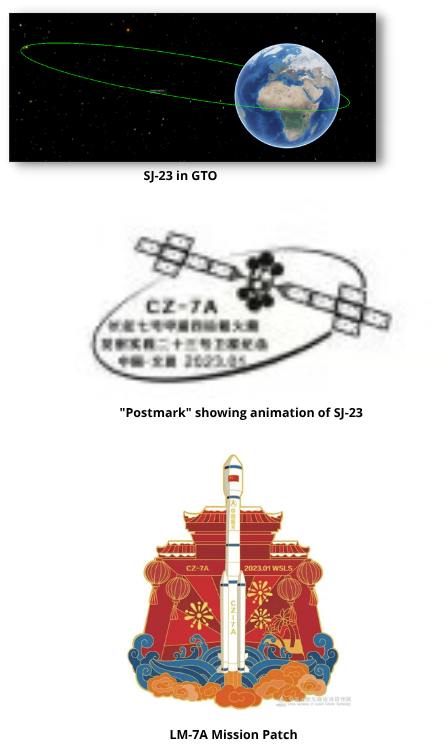 9 Jan 2023: China launched Shijian-23 from Wenchang using a LM-7A. SJ-23 is currently in a Geosynchronous Transfer Orbit (GTO). Shijian, “trial” or “pilot” in Chinese, satellites typically have classified missions and the nature of SJ-23 capabilities and mission are unknown.
