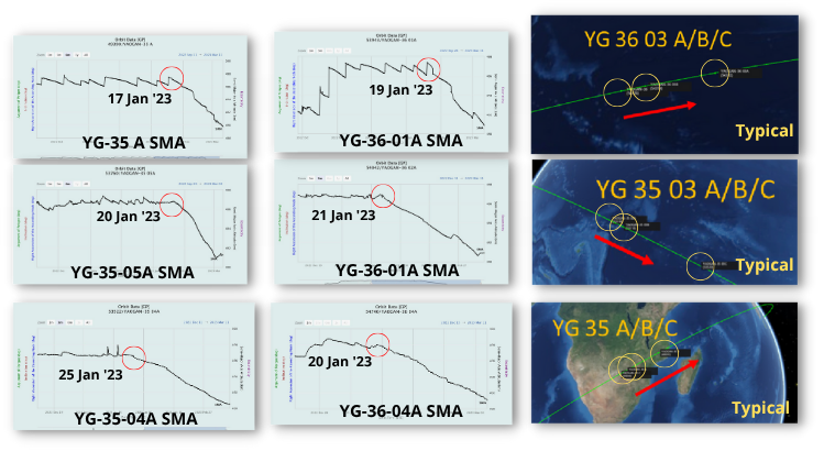 – On average YG-35 satellites have reduced their SMAs 7.3km, YG-36 satellites have reduced their SMAs 7.0km.