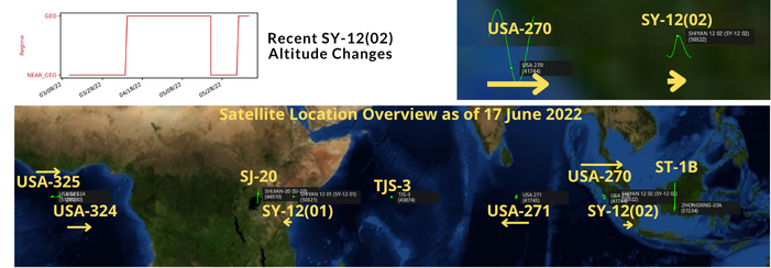– However, USA-270 is drifting Eastward at a greater rate and (based on CelesTrak/SpaceTrak.org data) will overtake SY-12(02) at ~0500Z on 26 June 2022.