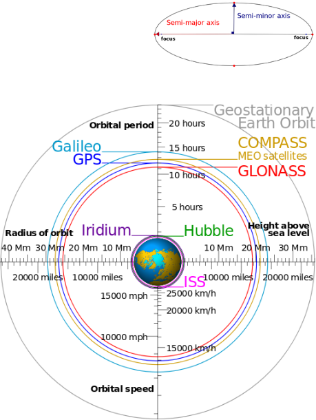 The a^3 is semi-major axis raised to the 3rd power, or “a times a time a.” There’s a square root involved. Math is so much fun! So, with “a” equal to 7,000 KM, let’s see how long a lap of the Earth takes. Pi is 3.14159 (good enough for our use, it continues out really far). Got a calculator or Excel? Crank it out, what do you get? I get 5,828 seconds. Hummm, what’s that in minutes? I get 97.1 minutes.