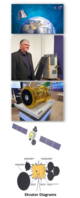 -Reports state Ekvator will have a total mass of about 2,300kg and a payload mass of 755kg. Two drawings of the satellite published in the report show several antennas operating in the Ka-, Ku-, and S-bands.