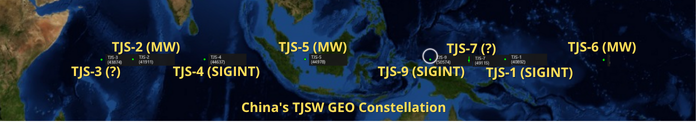 SAST produced TJSW 2, 5, 6 & 7. TJSW 2, 5 & 6 look like missile early warning satellites similar to US SBIRS. These are apparently built on the same bus as the FY-4 GEO weather satellites. There is debate on the mission of TJSW-7, it may be another missile warning satellite or a communications test satellite or something else entirely. The location appears to place it roughly equidistant from TJSW-5 & 6 suggesting a missile warning role. The mission of TJSW-3 was identified as a GEO belt “inspector sat” that exhibited unusual behavior after launch interacting with its Apogee Kick Motor.