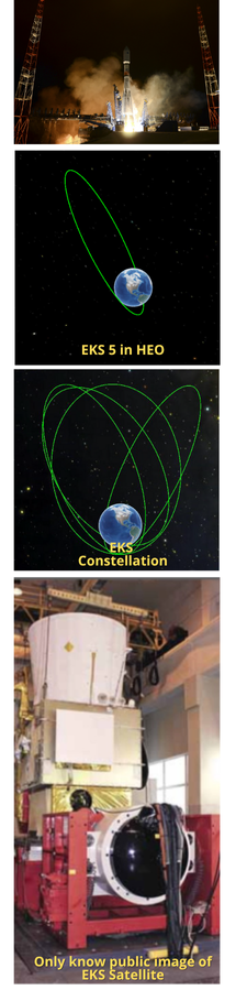 – EKS satellites are believed to have infrared telescopes designed to detect heat sources which may indicate the launch of a missile. Other instruments on the satellite include optical and ultraviolet equipment to gather further data.