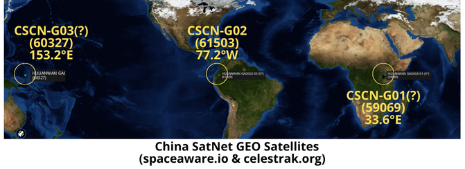 10 Aug: In doing research into China’s growing pLEO Guowang constellation I kept running across the 3 “High Orbit Internet Satellites” (aka “Hulianwan Gaogui” in the Space-track.org catalog) (59069, 60327 & 61503) China launched to GEO in 2024 and wondered if there was any connection with the similarly named LEO based “Hulianwang Digui” satellites (this is the catalog name for the Guowang LEO satellites). So I did the sensible thing and reached out to Blaine Curcio (author of the China Space Monitor & friend of the Flash). Turns out the GEO satellites are very likely owned/operated by China SatNet, the very entity that is now fielding the pLEO Guowang constellation. Blaine’s evidence for the connection below (thank you!)