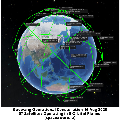 – With this launch there are now 67 satellites in the operational Guowang constellation (see graphic & table next page). Additionally, China has launched 14 Guowang test satellites.