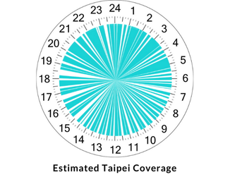 China has created a Yaogan 30 satellites constellation of six equally-spaced planes. With their 35° inclination, Yaogan 30 satellites are optimized to look at countries close to China, especially on the Pacific coast. So Taipei, the capital city of Taiwan, is a very representative target. Over a 24 hour window, the coverage is almost constant. The biggest gap is approximately 30 minutes, while most gaps are less than 10 minutes every half an hour. See VIDEO demonstrating coverage over Taipei.