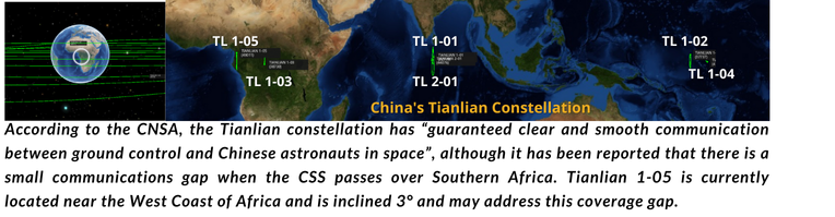 – China is also in the process of assembling a constellation of second generation Tianlian satellites, known as the Tianlian 2 constellation, which began with the launch of Tianlian 2-01 on 31 March 2019.