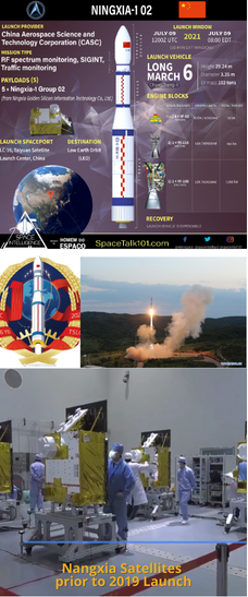 09 Jul 2021: China launched a Long March 6 from Taiyuan sending 5 Ningxia remote sensing satellites into orbit. The launch doubled the Ningxia constellation to 10 satellites. Launch VIDEO.