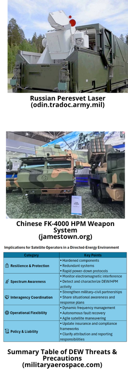 22 Oct 2025: A 2025 report from Military Aerospace Electronics notes Chinese and Russian directed-energy research and fielding point to growing space-focused capabilities. Specifically the report notes efforts using lasers and high-power microwaves (HPM) to threaten or protect space systems, harden on-orbit electronics, and enable precision, long-range effects from space or against space sensors. Excerpts below.
