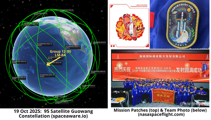 16 Oct 2025: China launched a Long March-8A from Taiyuan with the 12th group of SatNet LEO satellites (SatNet LEO Group 12) for the Guowang constellation. The launch carried 9 satellites (65995-66003) into a new 50.0° orbital plane. Launch Video.