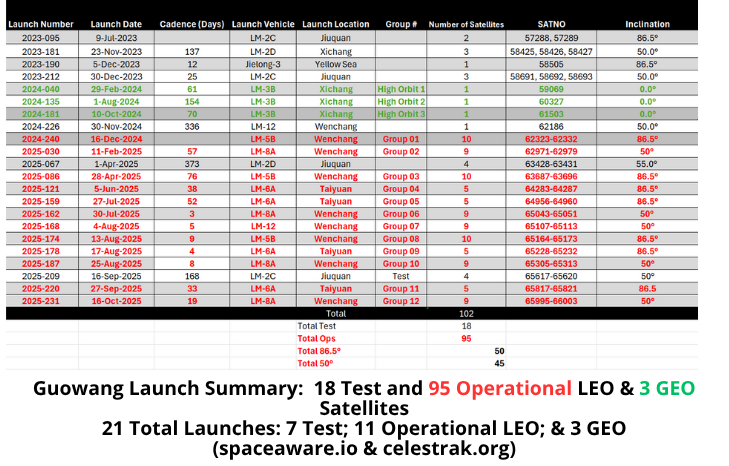 – Summary of Guowang Operational Launches