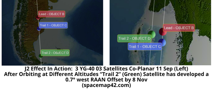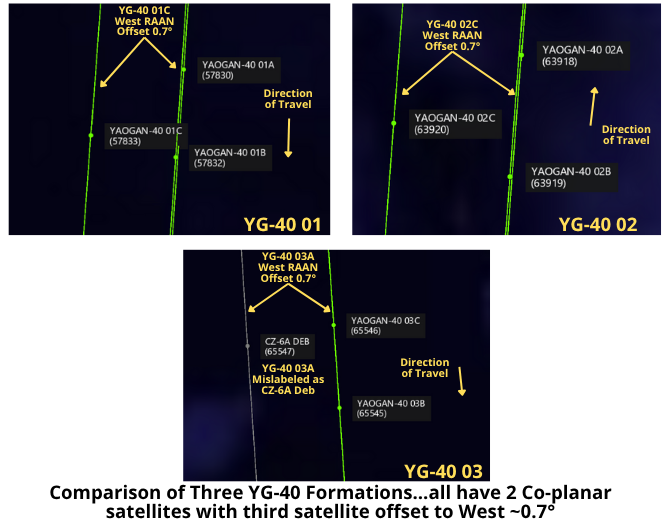 China deployed the 3 YG-40 formations into orbital planes separated by ~37°. Unknown how many YG-40 triplets China intends to launch.