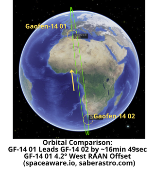 -Currently GF-14 01 has a 4.2° west RAAN offset from GF-14 02. This may change as GF-14 02 settles into its final orbit. Recall rate of RAAN precession varies with average altitude.