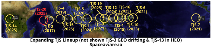 – TJS-20 is the 6th TJS launch in 2025, 2x greater than any other year. In the past 10 years China has launched 18 TJS satellites, half of which were launched in the past 2 years. For some reason China avoided the TJS-8 and TJS-18 designations…