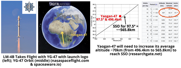 9 Dec 2025: China launched a Long March-4B with the Yaogan-47 (66988) imagery satellite from Jiuquan. According to official sources, the satellite has entered the preset orbit successfully and “will be primarily used in national land surveys, urban planning, road network design, crop yield estimation, environmental management, and disaster prevention and mitigation”. YG-47 is in a nearly sun-synchronous orbit typical for imagery satellites, with an average altitude of 496.4km and an inclination of 97.5°. At this inclination the satellite needs to increase its SMA (average altitude) nearly 70km to reach SSO. Launch Video.