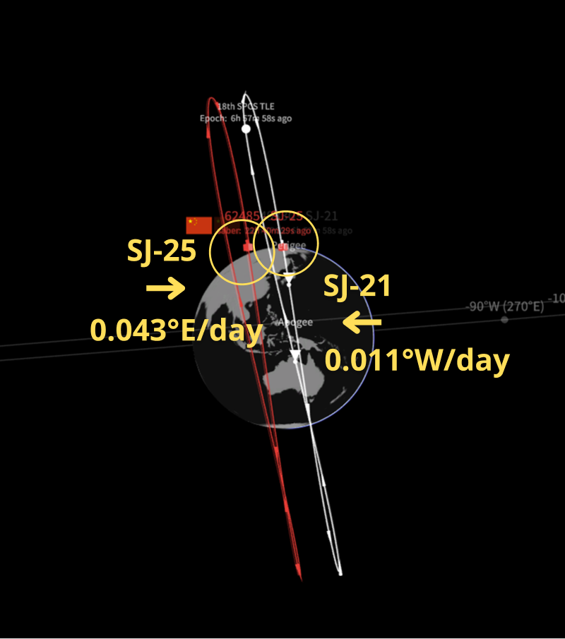 1 Feb - 4 Mar 2026: Orbital History for SJ-21 (left) and SJ-25 (right) (celestrak.org)