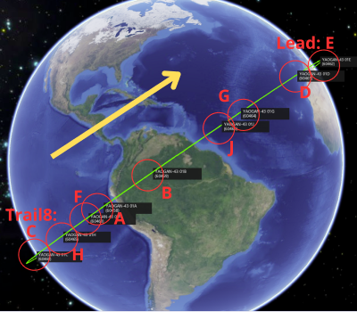 4 Mar 2026: 8 of 9 YG-43 02/03 Satellites Maintaining Orbits and Relative Positions with One Another (spacemap42.com)