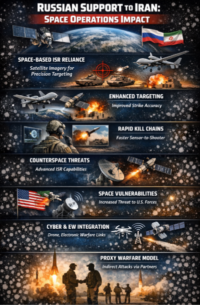 - Enhanced targeting accuracy through space-enabled data fusion: Integration of satellite imagery with drone systems improves Iran’s ability to conduct coordinated, multi-domain strikes against U.S. assets.