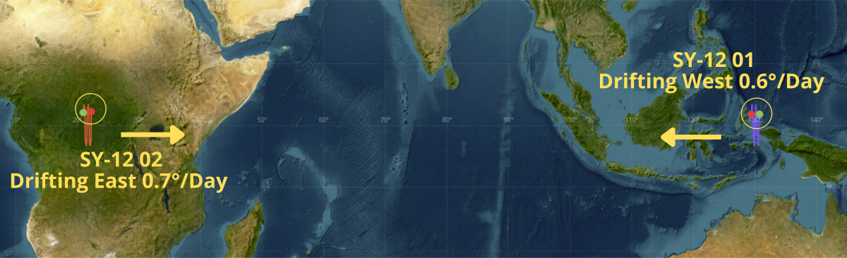 – On average the two SY-12 satellites cover from 18.0°E to 175.1°E during each leg of their journey. Average time for each leg has been 244 days.
