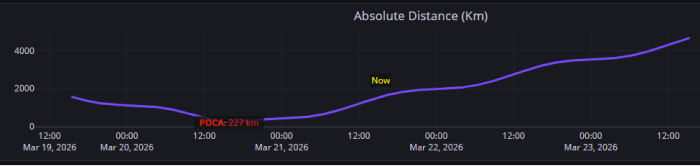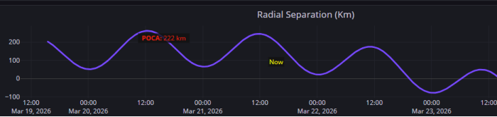 19-23 Mar 2026: TRIC Plot of Separation Distance between TJS-3 & TJS-10 Absolute Separation at POCA ~227km (Radial Separation ~222km) (saberastro.com)